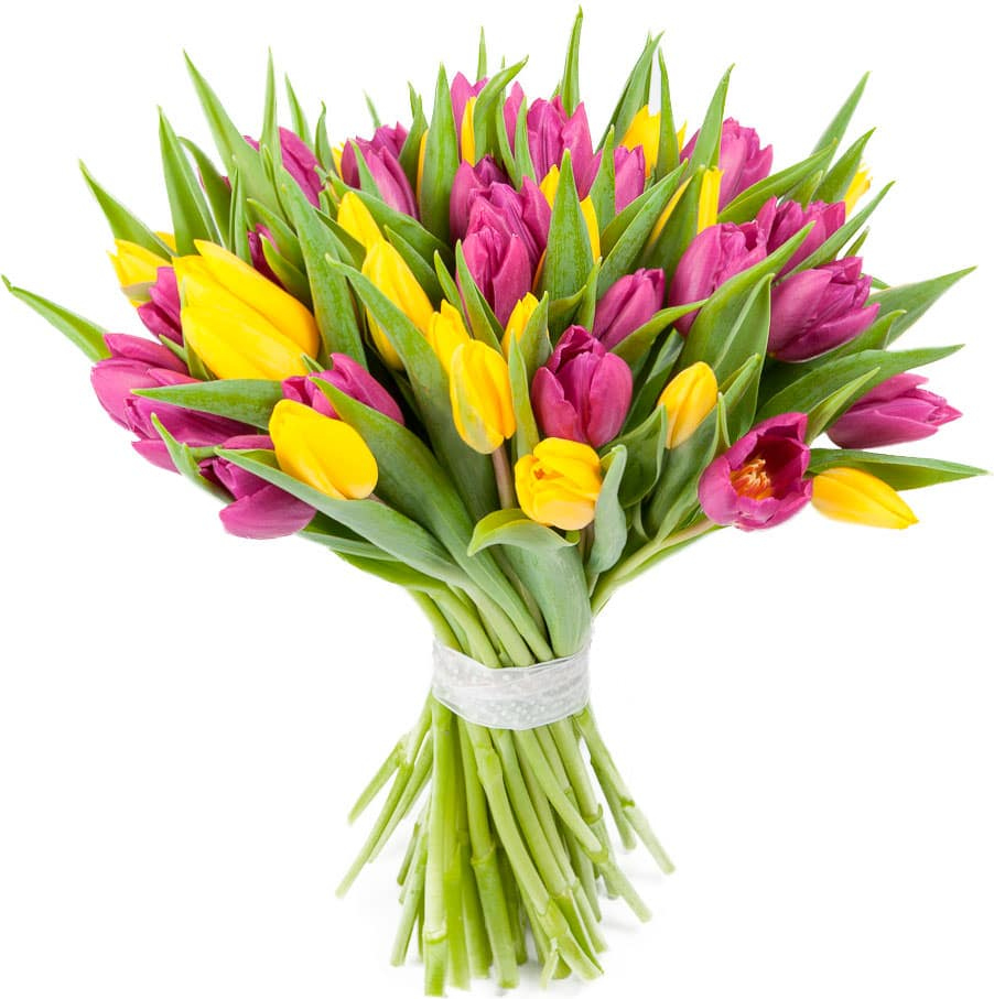 Красивейший букет из желтых тюльпанов - символа радости, счастья и наслаждения, в сочетании с нежными и грациозными розовыми тюльпанами - это букет, который прекрасно подойдет в качестве романтического подарка девушке в начале ваших отношений. Такой букет никого не оставит равнодушным.
